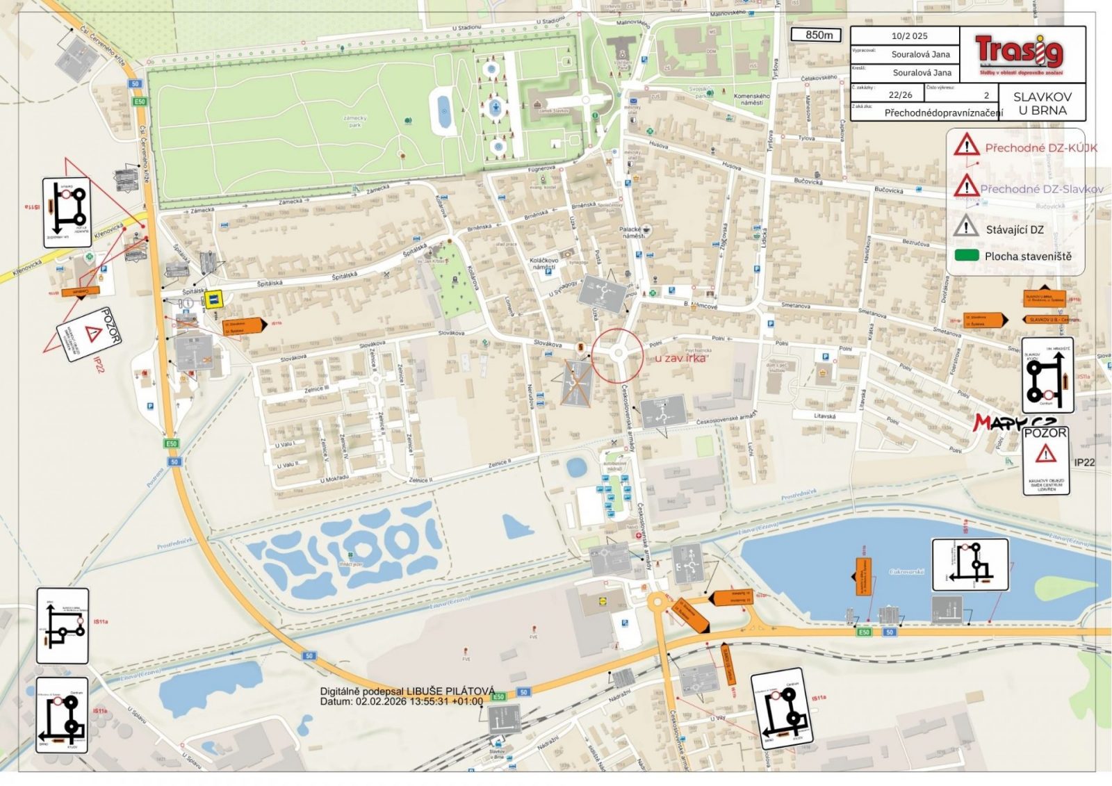 Město Slavkov u Brna informuje občany o dopravním omezení v souvislosti s opravou kanalizace pod okružní křižovatkou ulic Československé armády, Slovákova a Polní.