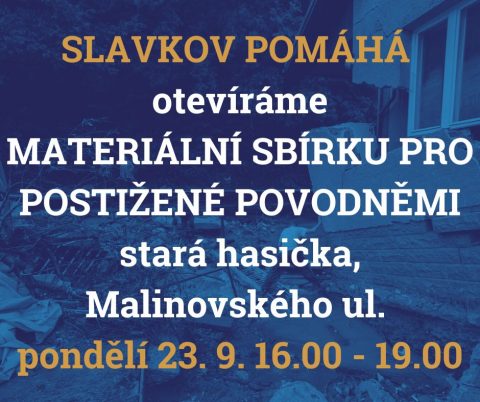 Po domluvě s Potravinová banka pro Brno a Jihomoravský kraj, z.s. a Oblastní charita Hodonín otevíráme materiální sbírku i ve Slavkově u Brna. Materiální pomoc noste na stanici dobrovolných hasičů v pondělí 23. 9. od 16.00 – 19.00.