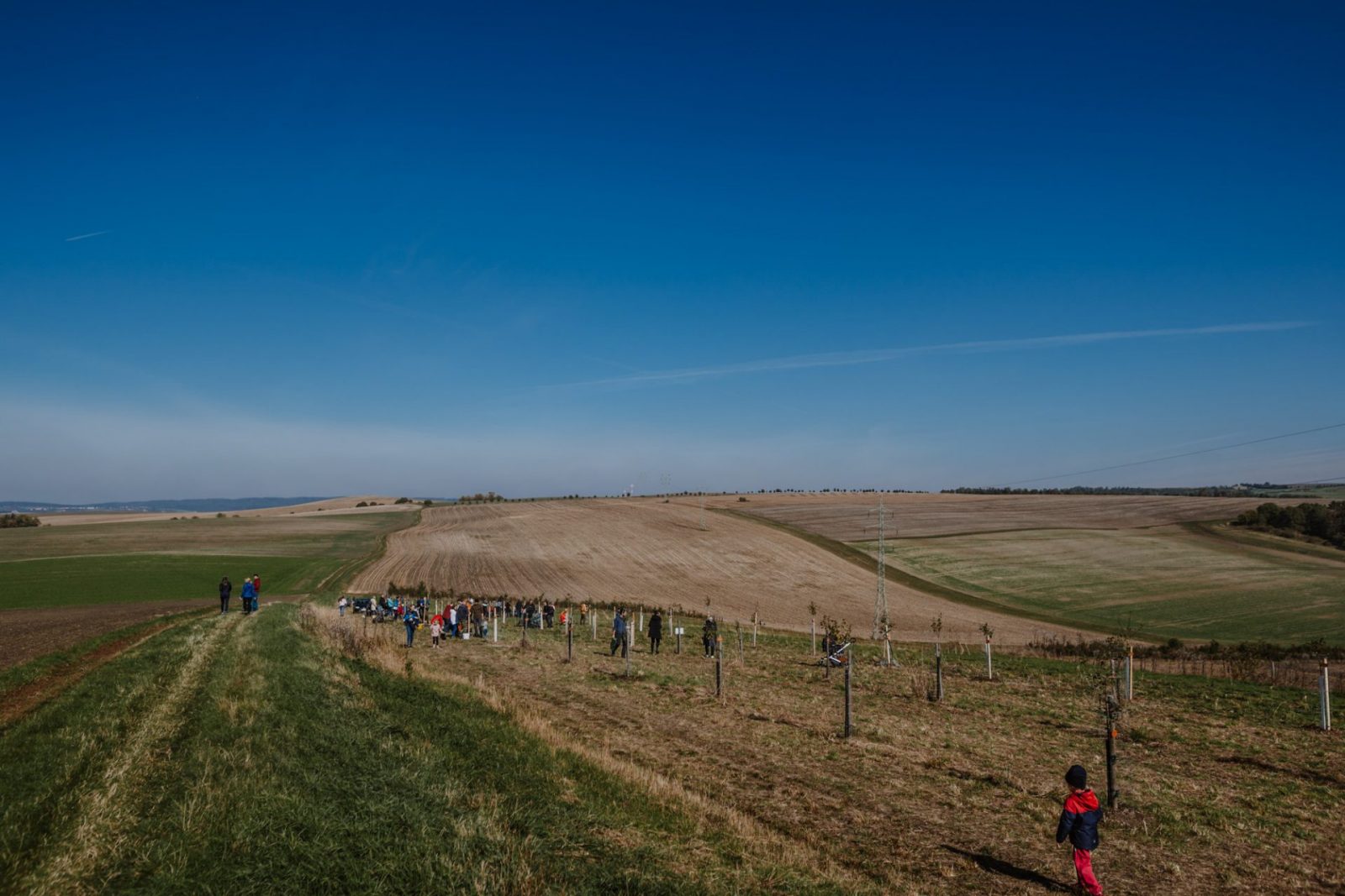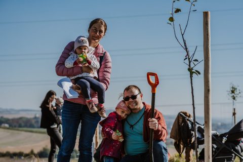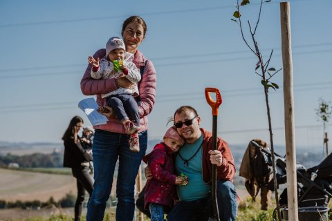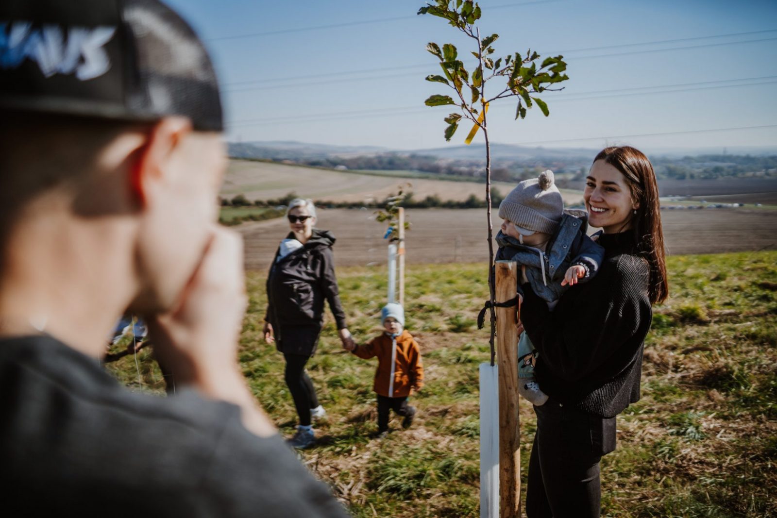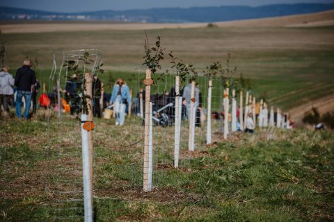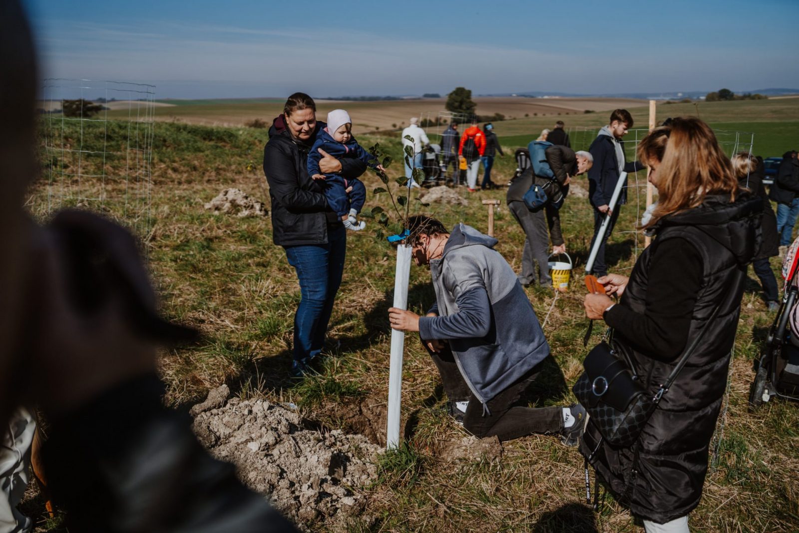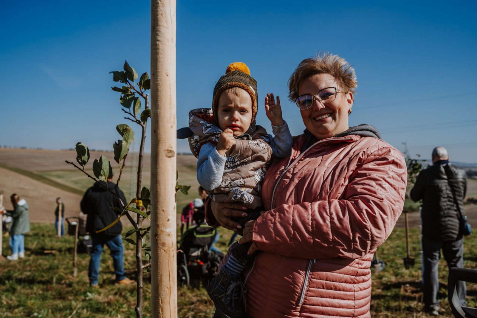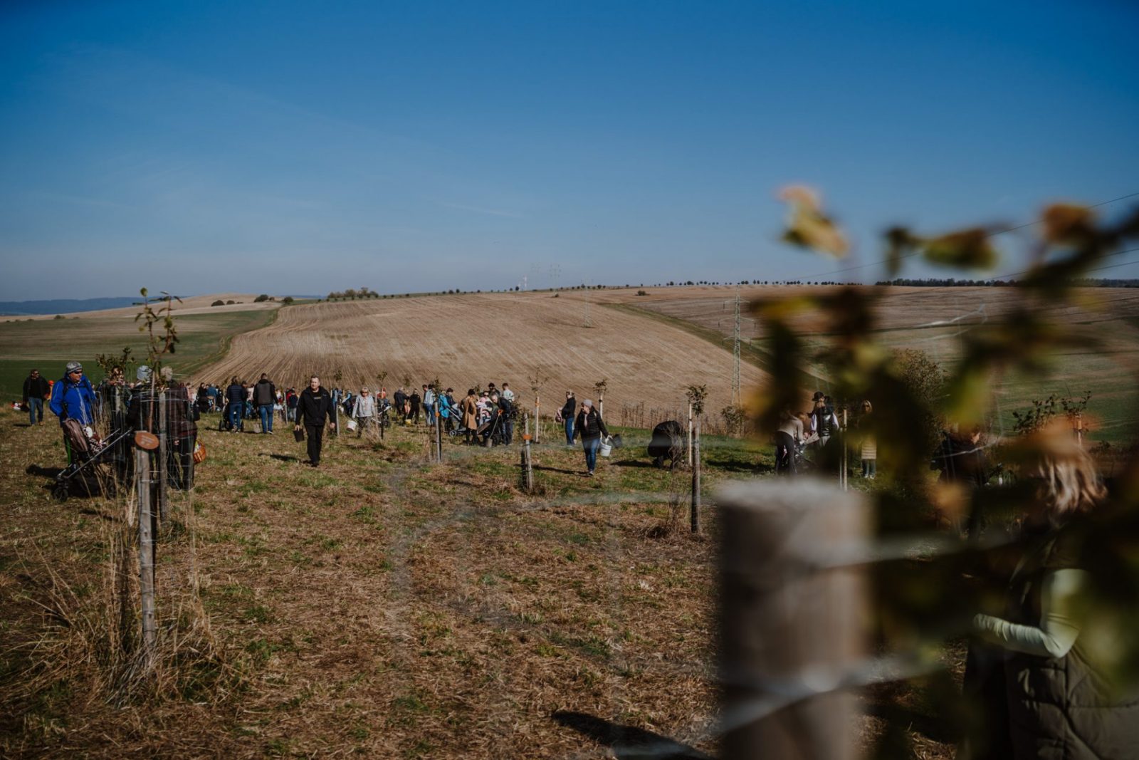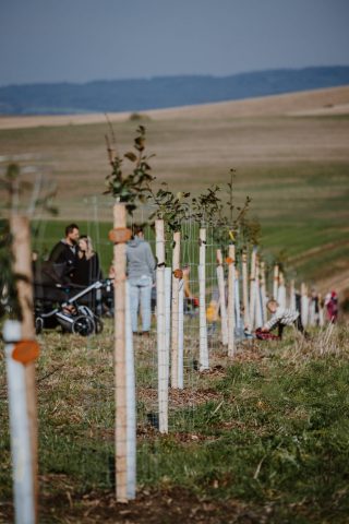 V místě zvaném Pod Spravedlností se letos sázelo podruhé. Nedaleko odsud, v lokalitě Kozí Hory již rostou stromy označené jménem malého Slavkováčka již od roku 2021. Od té doby se na rozhlehlém poli vysadilo přes 400 stromků – od starých odrůd hrušek, jabloní, kdoulí přes oblíbené mandloně, jeřáby, lípy nebo buky.