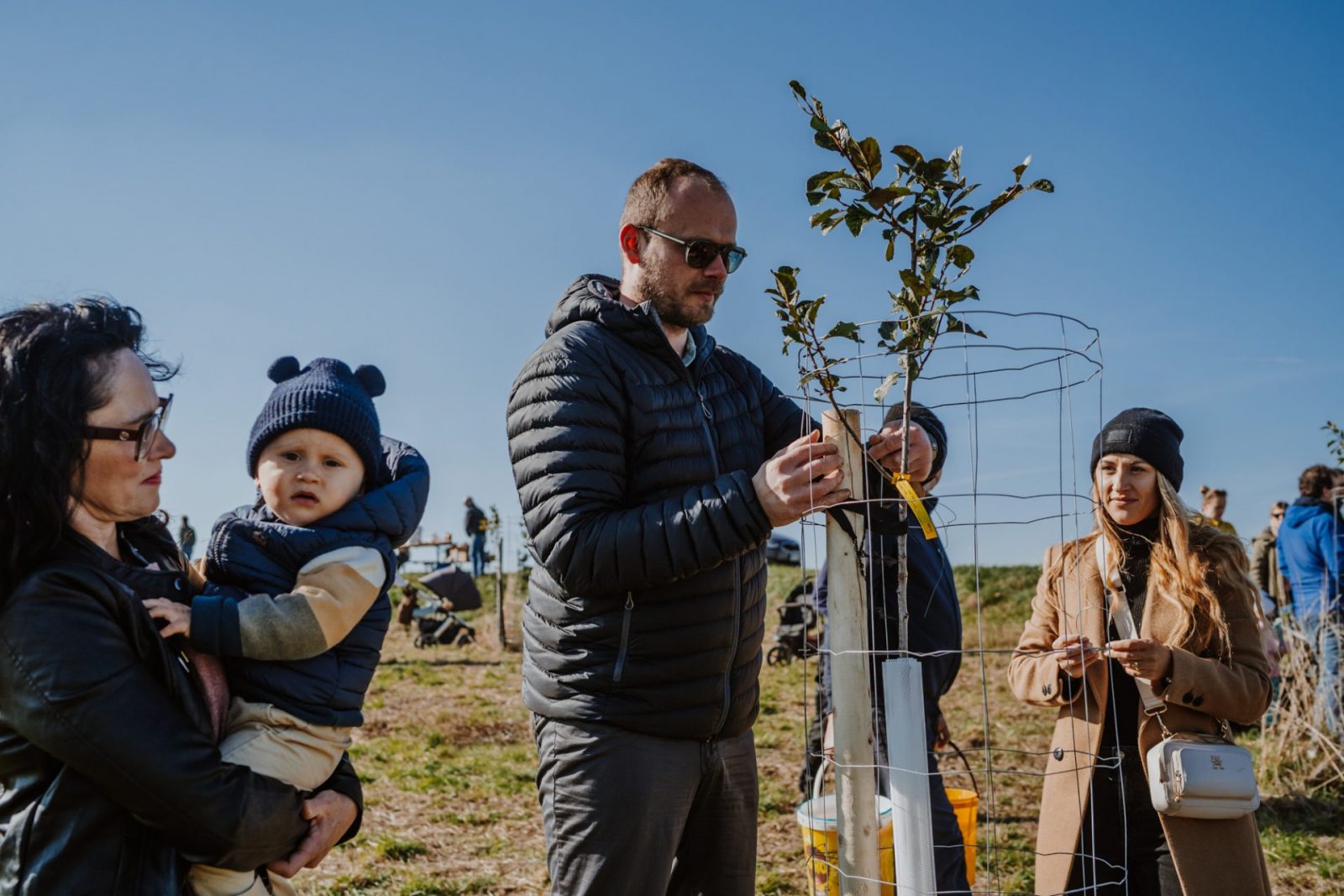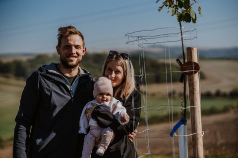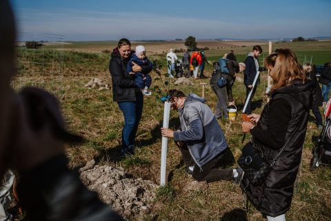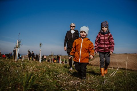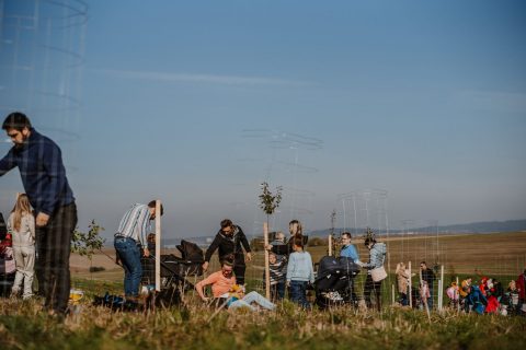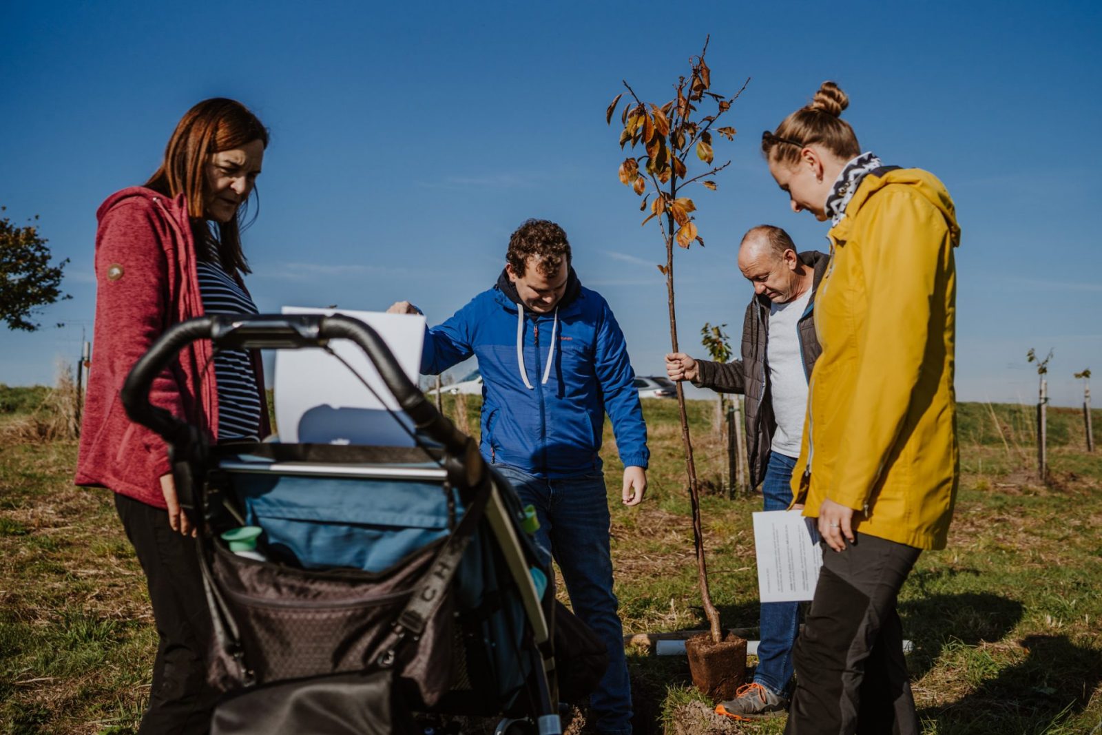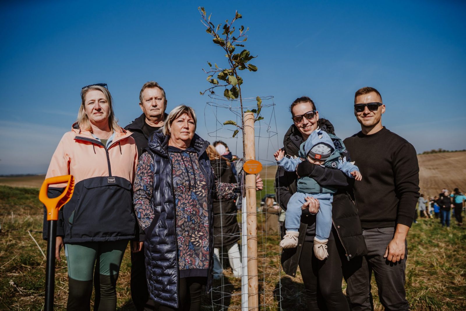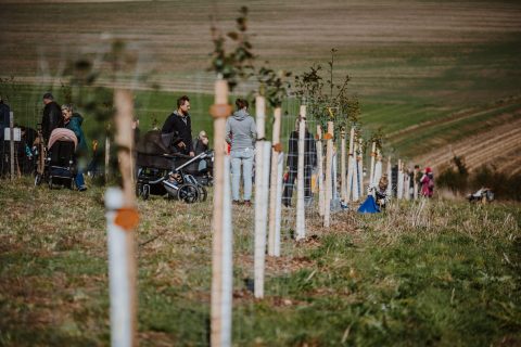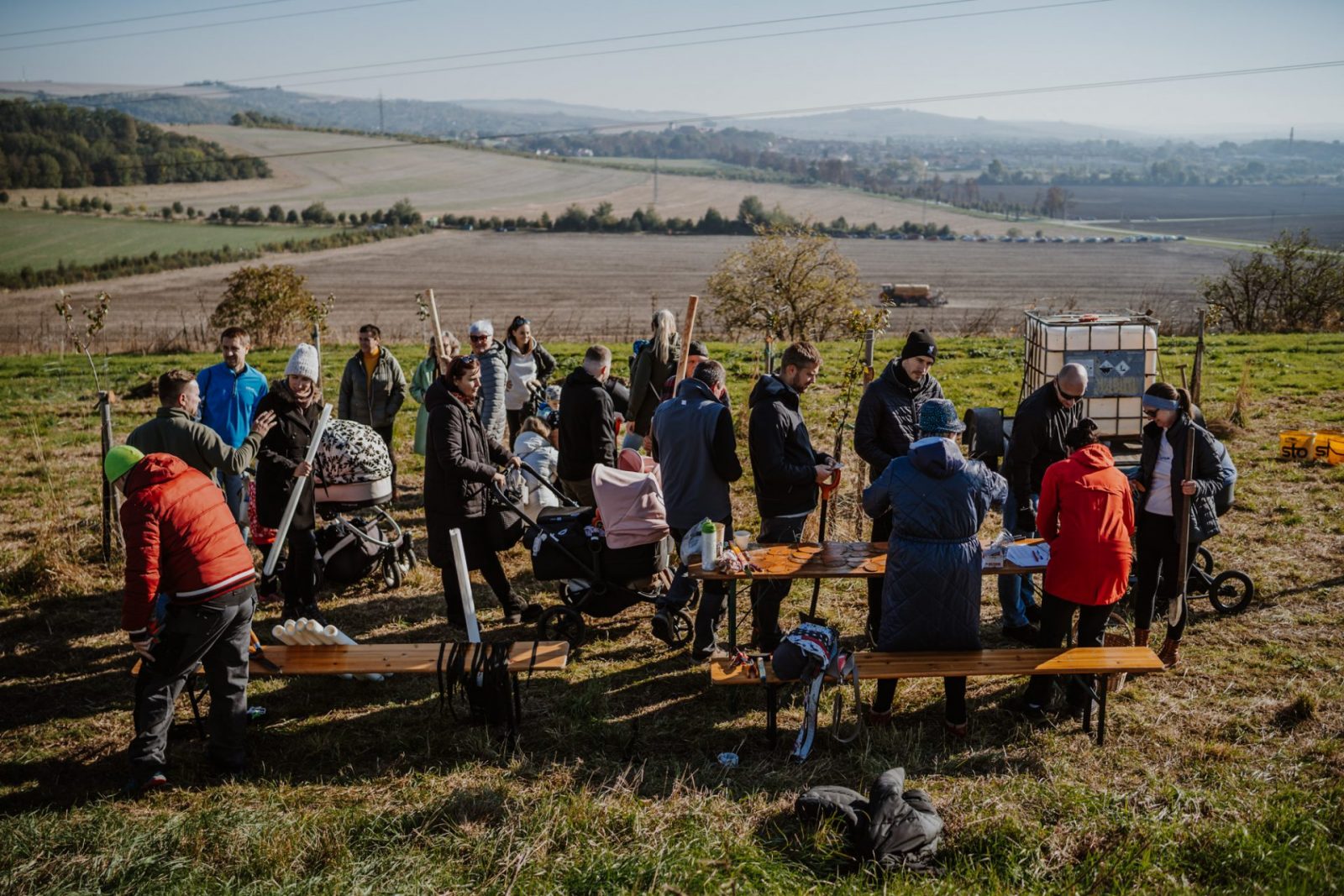 V místě zvaném Pod Spravedlností se letos sázelo podruhé. Nedaleko odsud, v lokalitě Kozí Hory již rostou stromy označené jménem malého Slavkováčka již od roku 2021. Od té doby se na rozhlehlém poli vysadilo přes 400 stromků – od starých odrůd hrušek, jabloní, kdoulí přes oblíbené mandloně, jeřáby, lípy nebo buky.