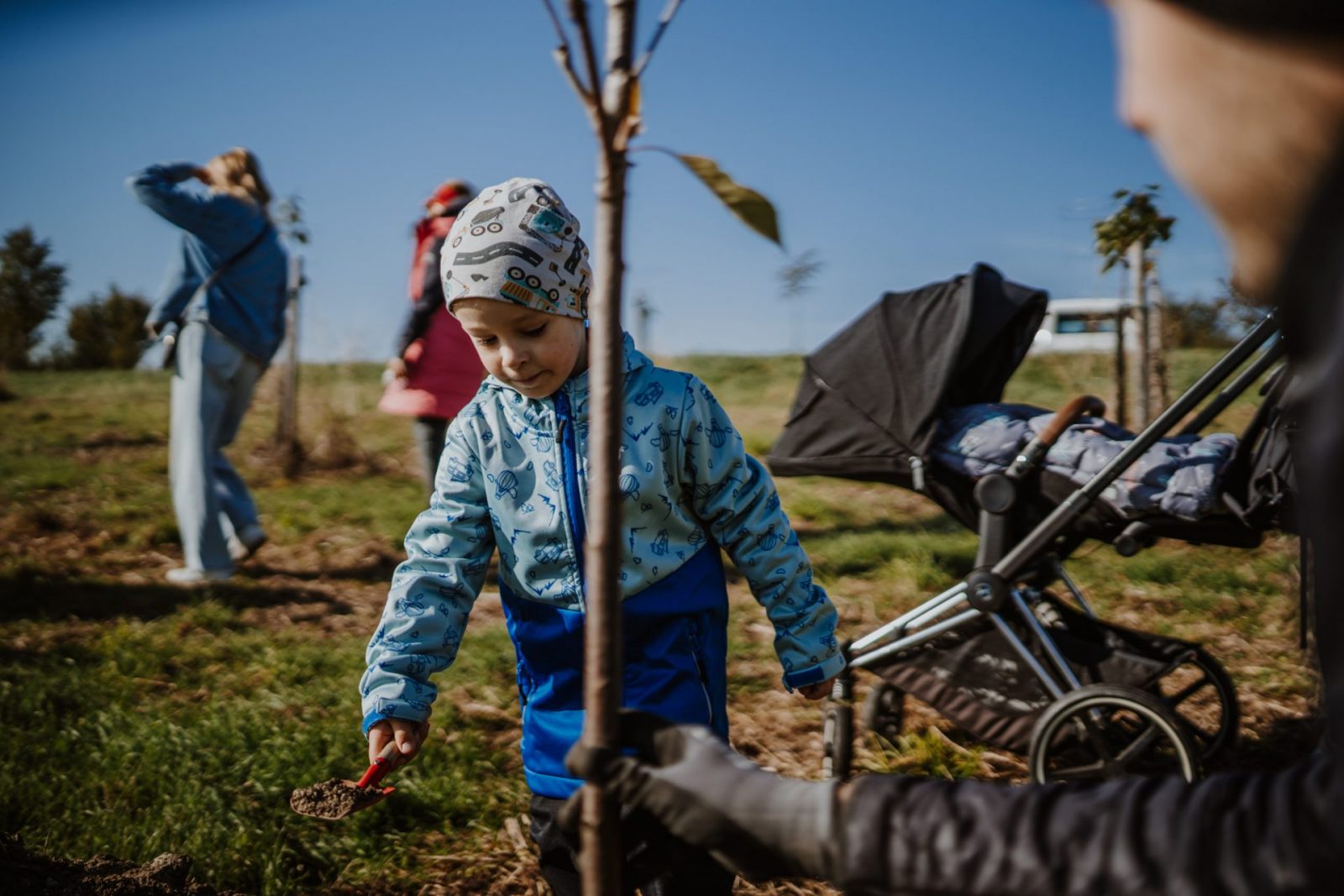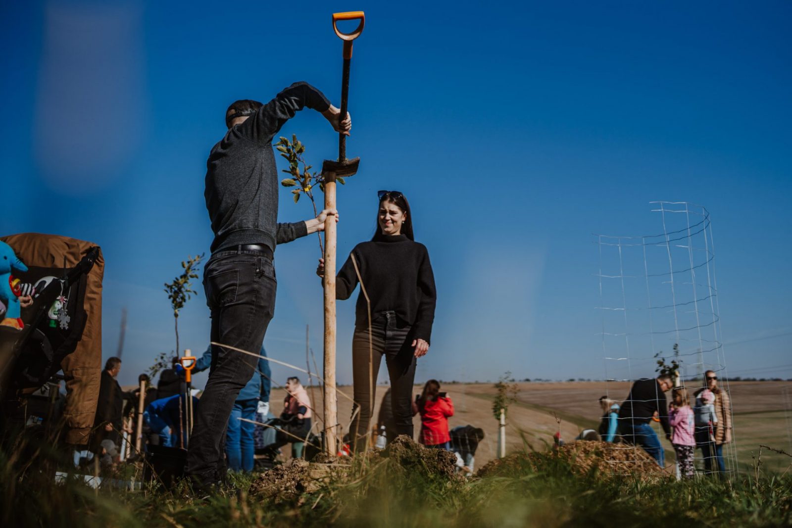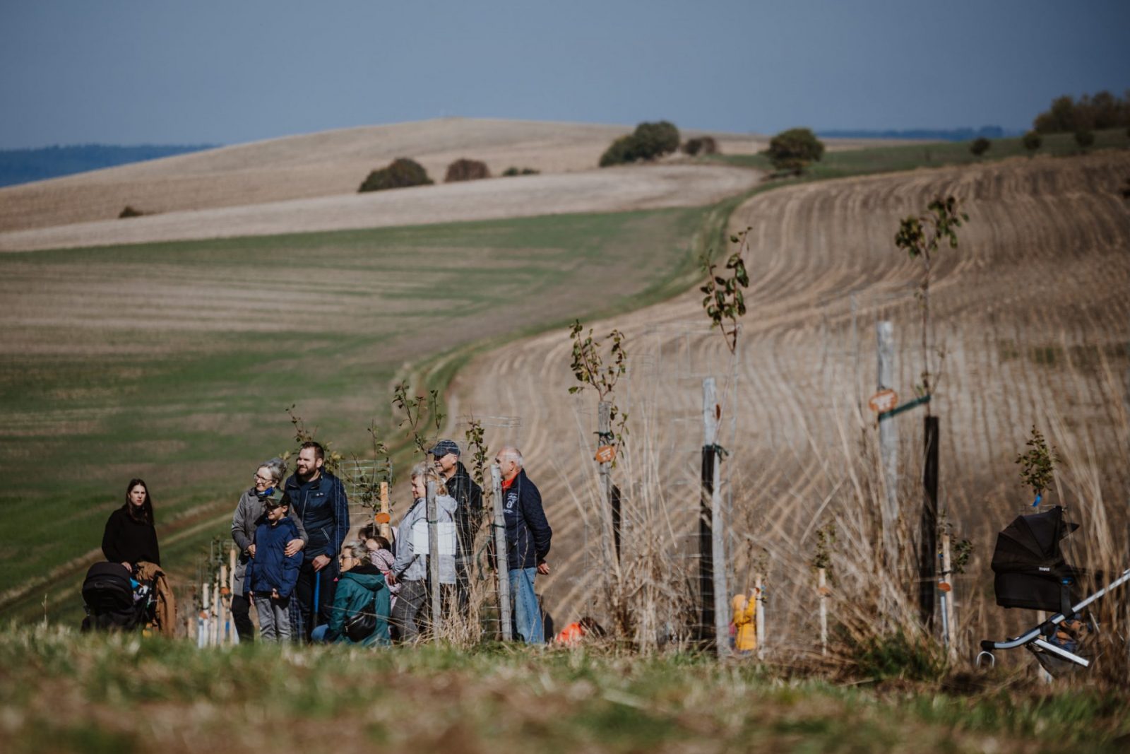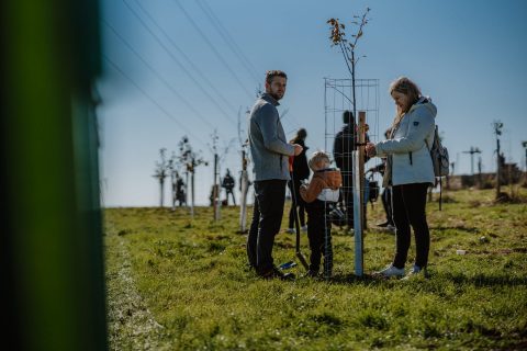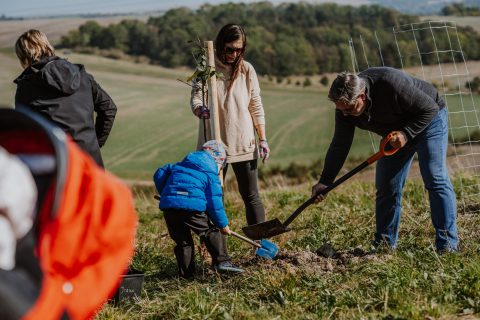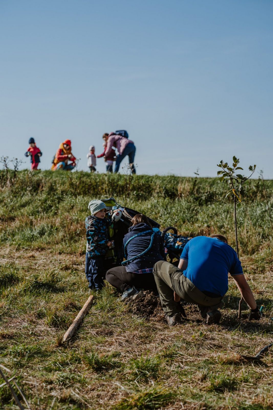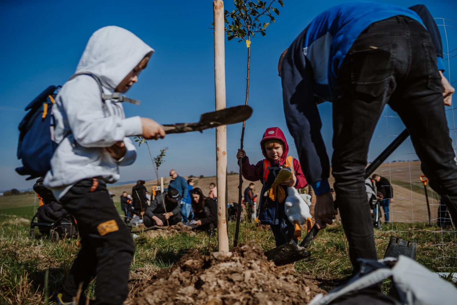 V místě zvaném Pod Spravedlností se letos sázelo podruhé. Nedaleko odsud, v lokalitě Kozí Hory již rostou stromy označené jménem malého Slavkováčka již od roku 2021. Od té doby se na rozhlehlém poli vysadilo přes 400 stromků – od starých odrůd hrušek, jabloní, kdoulí přes oblíbené mandloně, jeřáby, lípy nebo buky.