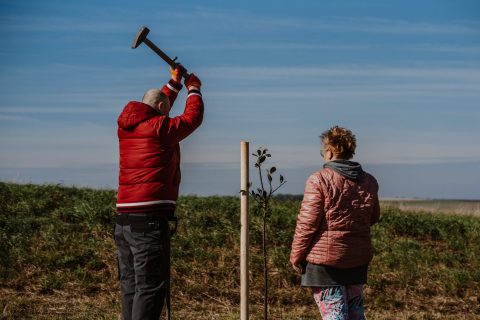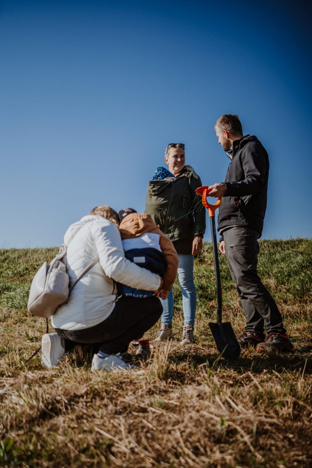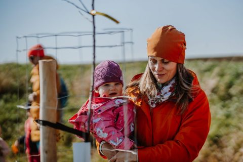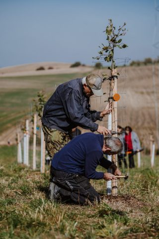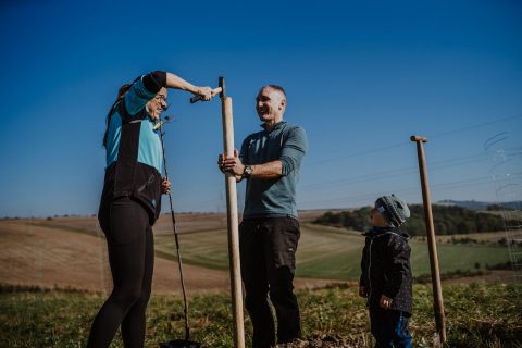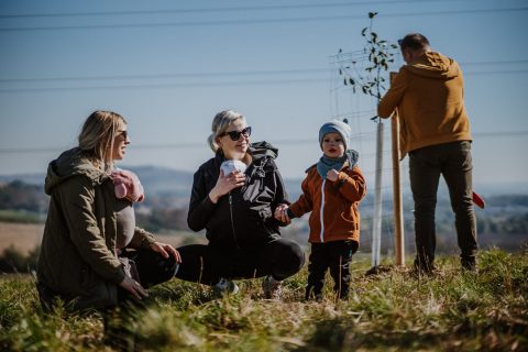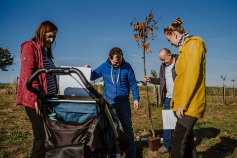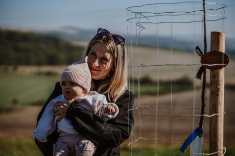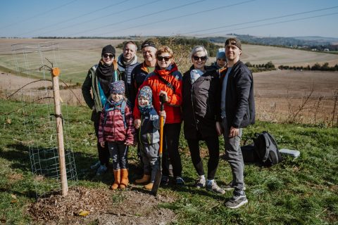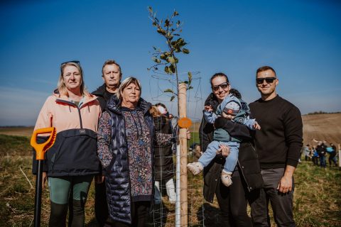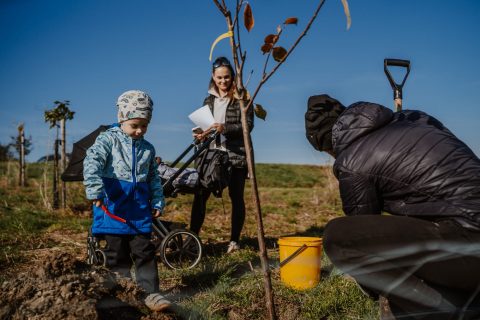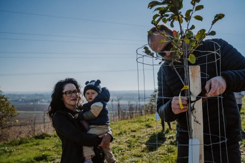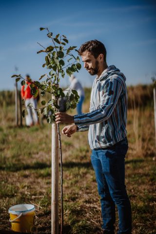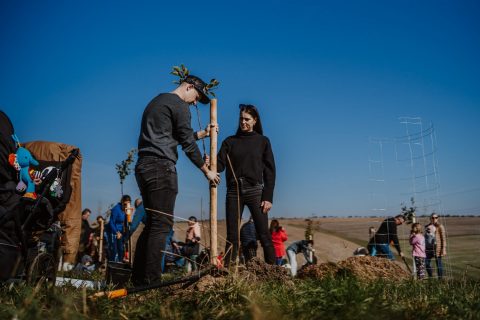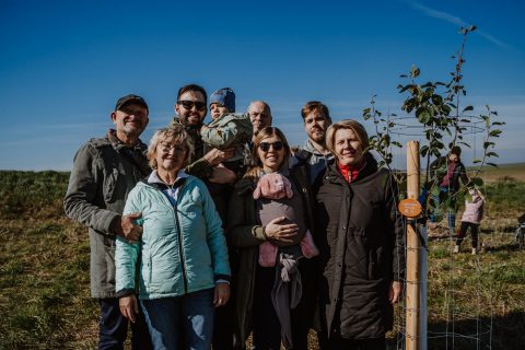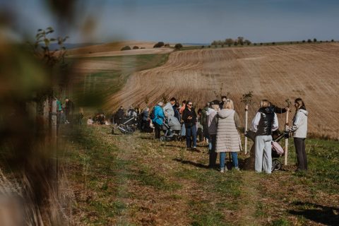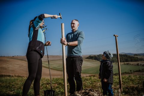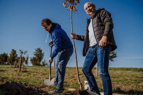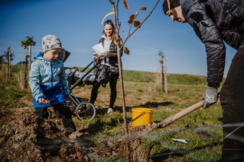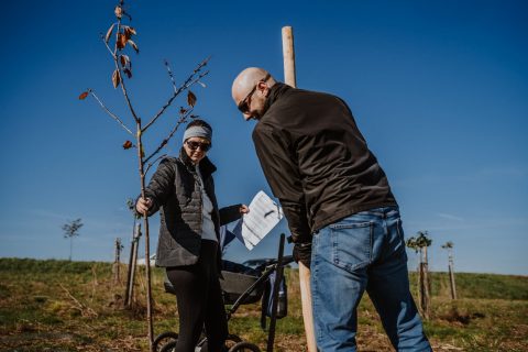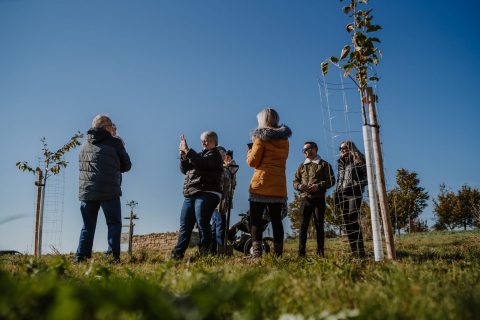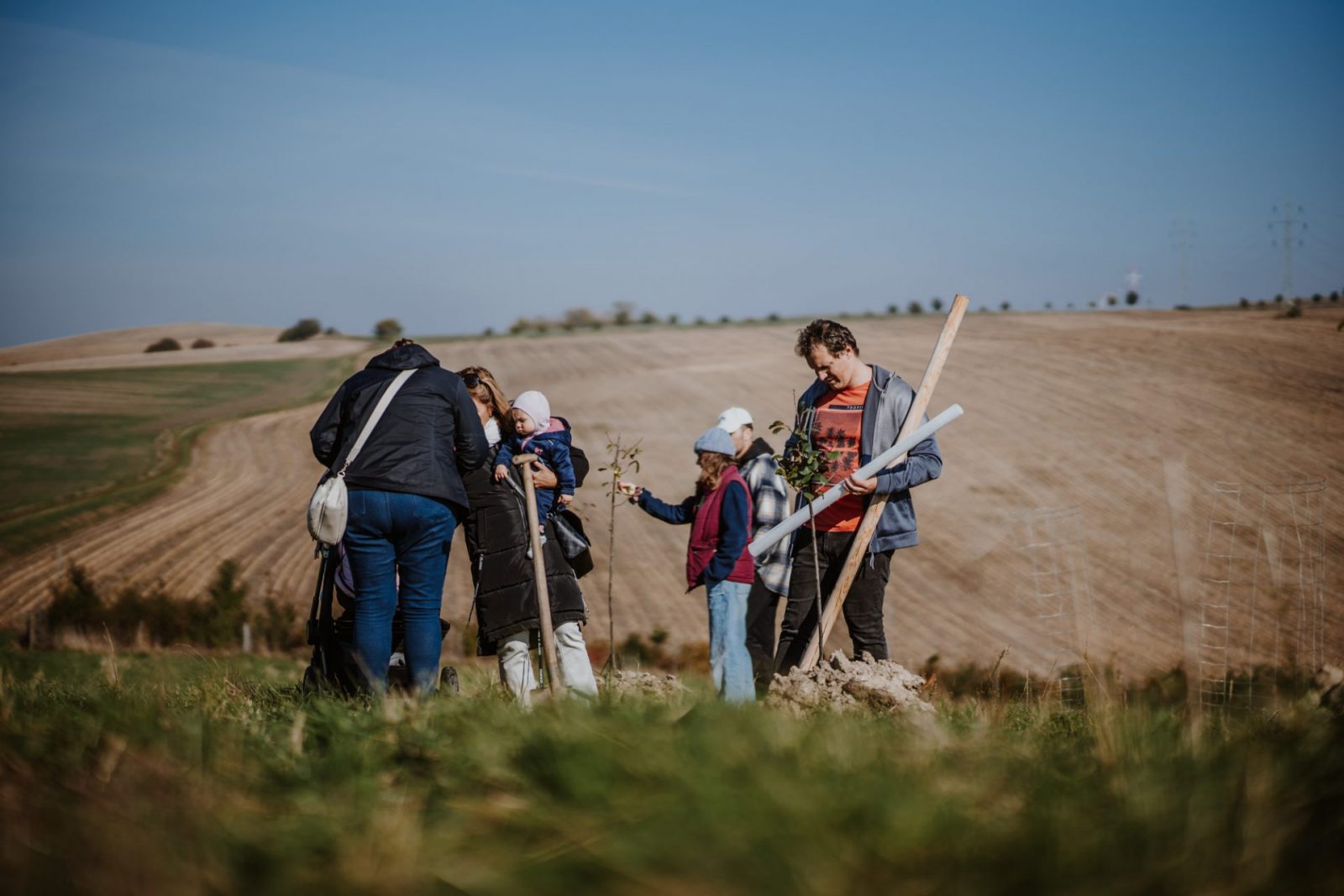 V místě zvaném Pod Spravedlností se letos sázelo podruhé. Nedaleko odsud, v lokalitě Kozí Hory již rostou stromy označené jménem malého Slavkováčka již od roku 2021. Od té doby se na rozhlehlém poli vysadilo přes 400 stromků – od starých odrůd hrušek, jabloní, kdoulí přes oblíbené mandloně, jeřáby, lípy nebo buky.