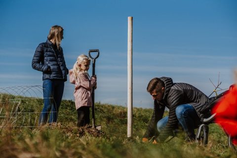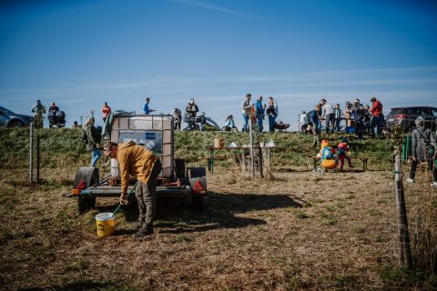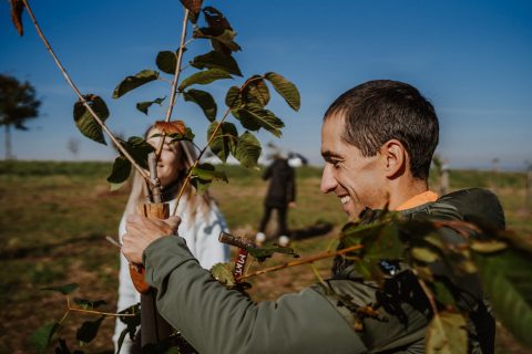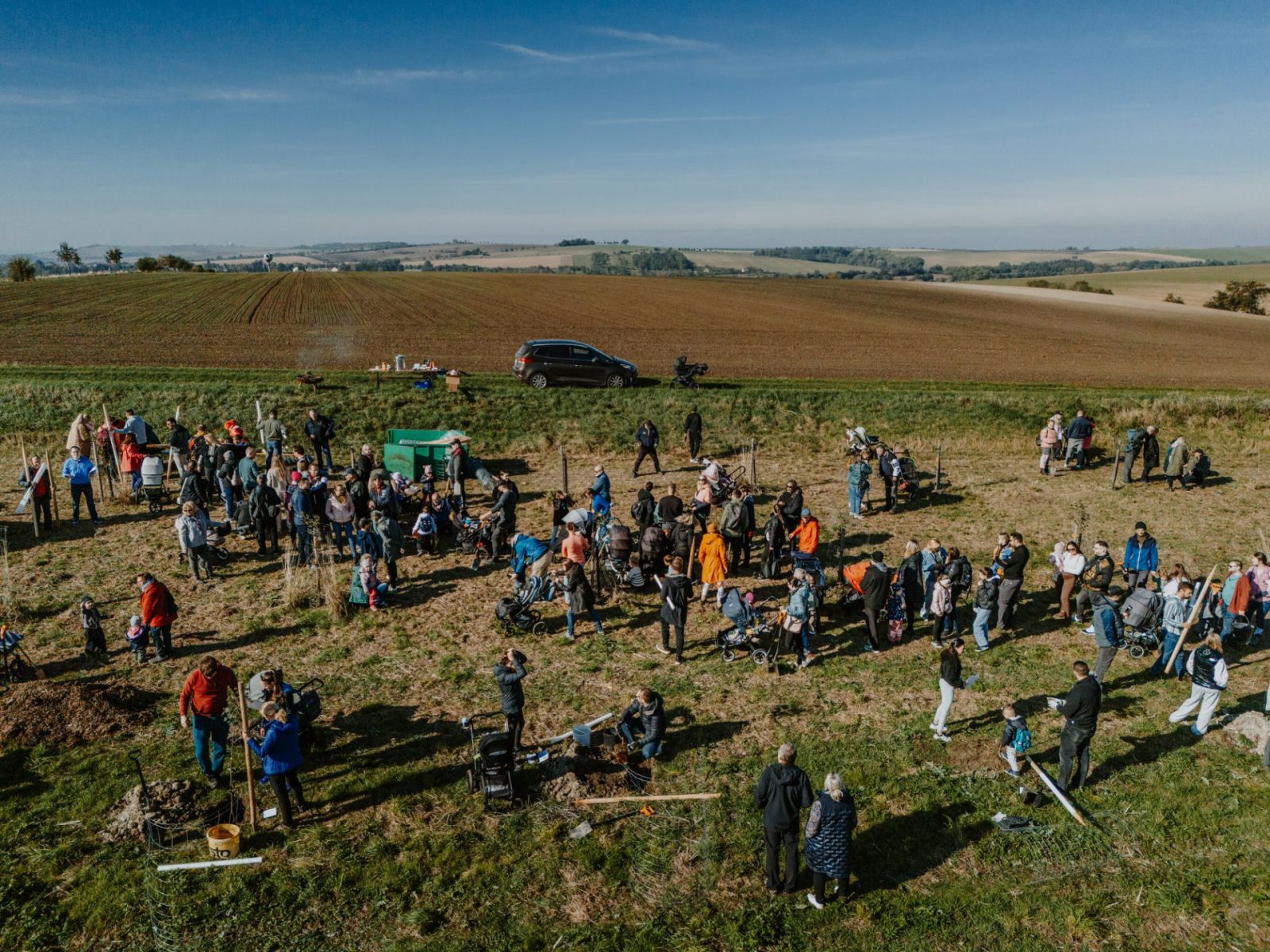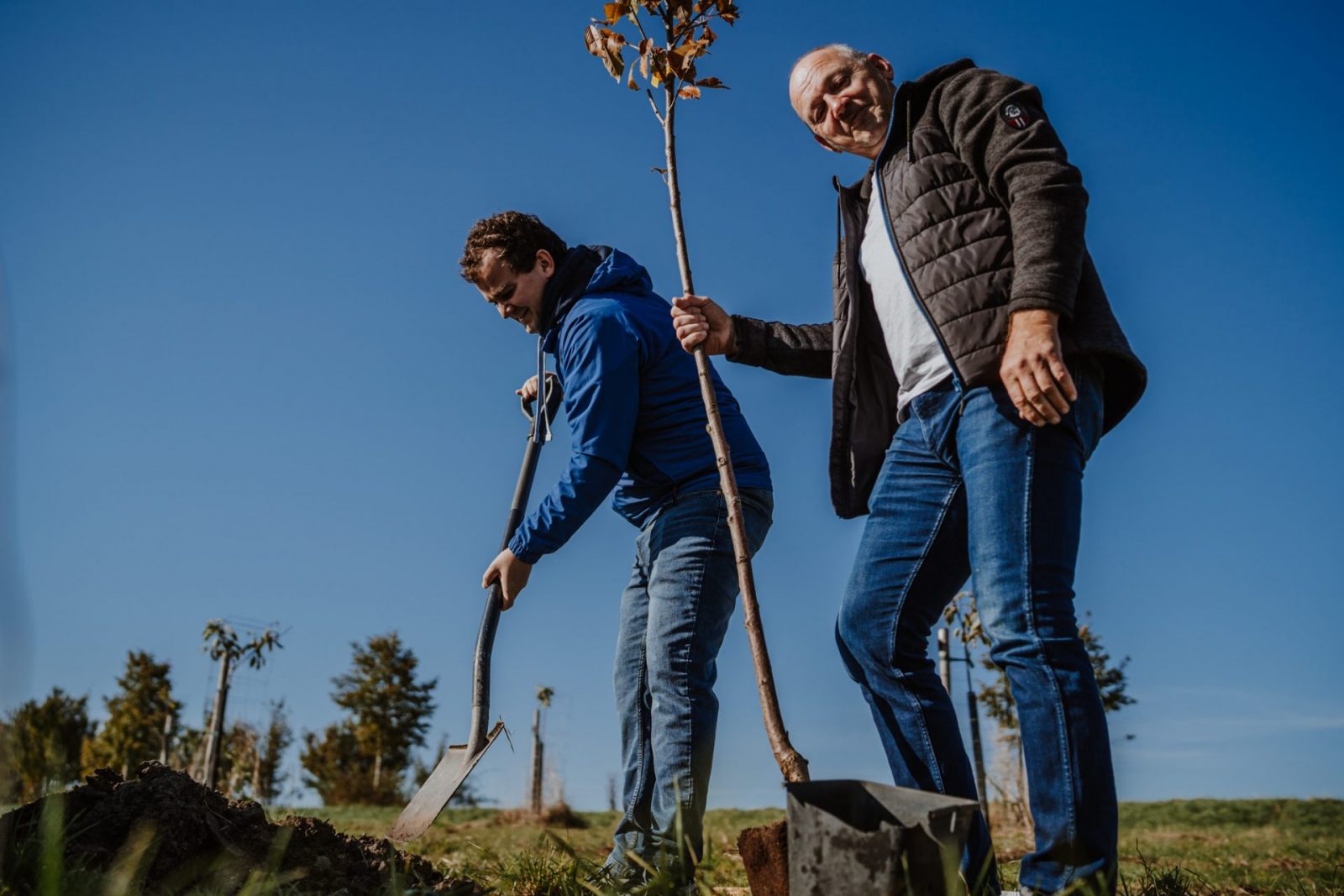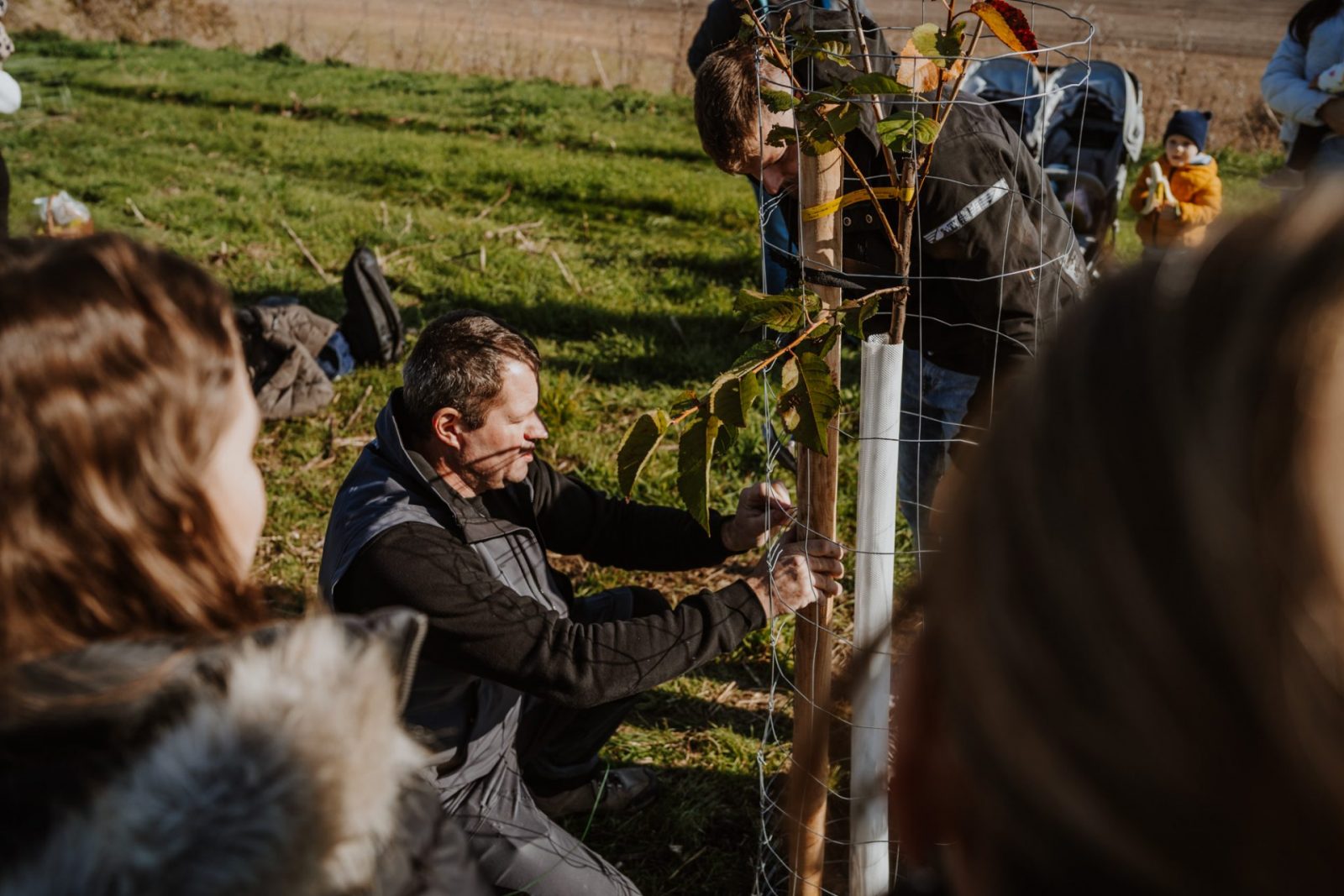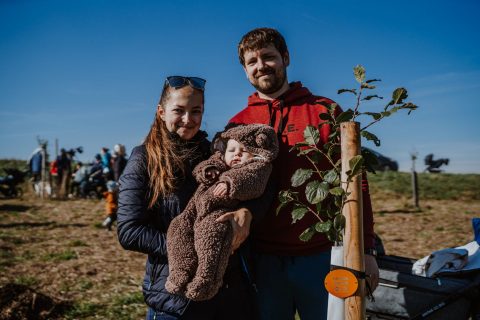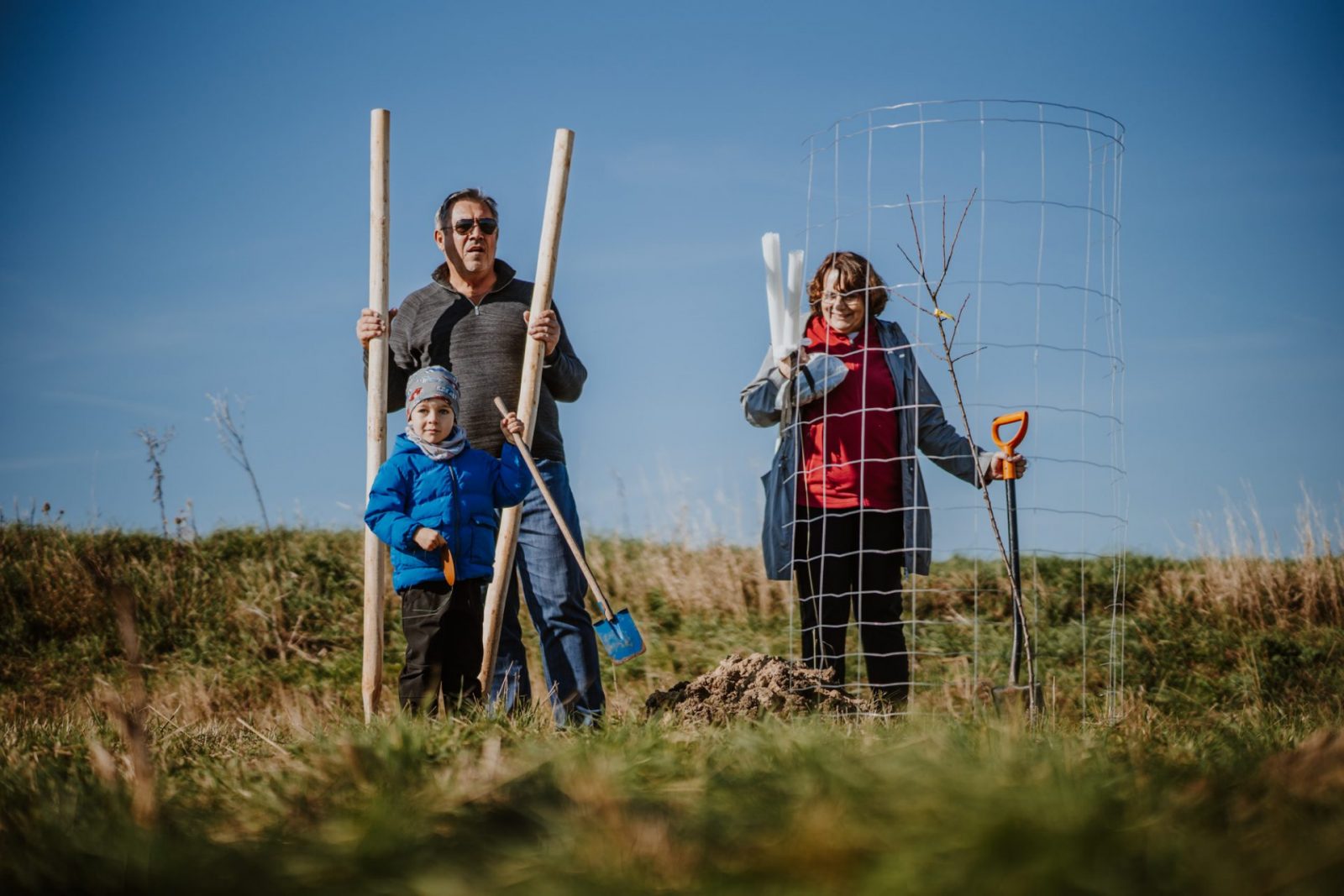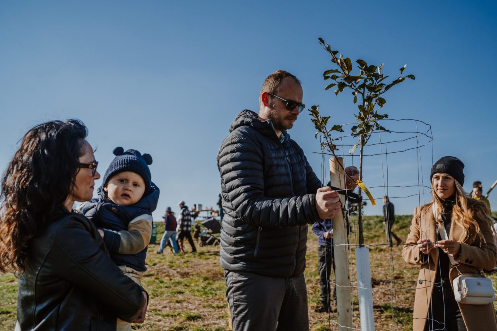 V místě zvaném Pod Spravedlností se letos sázelo podruhé. Nedaleko odsud, v lokalitě Kozí Hory již rostou stromy označené jménem malého Slavkováčka již od roku 2021. Od té doby se na rozhlehlém poli vysadilo přes 400 stromků – od starých odrůd hrušek, jabloní, kdoulí přes oblíbené mandloně, jeřáby, lípy nebo buky.